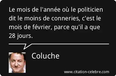 Le mois de l'année où le politicien dit le moins de conneries, c'est le mois de février, parce qu'il a que 28 jours.