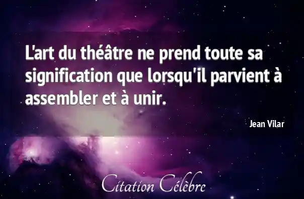 L'art du théâtre ne prend toute sa signification que lorsqu'il parvient à assembler et à unir.
