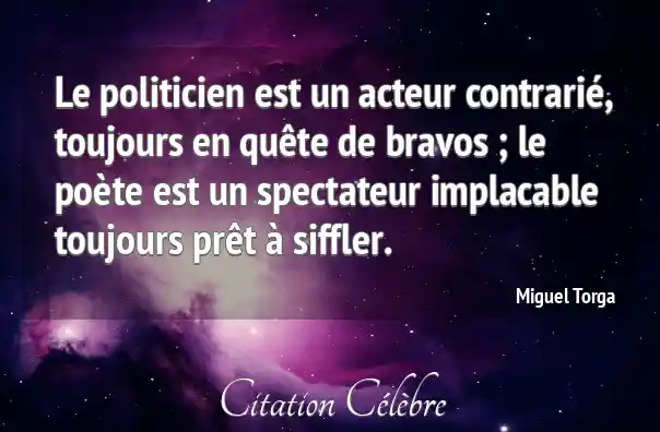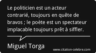 Le politicien est un acteur contrarié, toujours en quête de bravos ; le poète est un spectateur implacable toujours prêt à siffler.