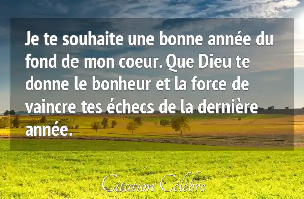 Je te souhaite une bonne année du fond de mon coeur. Que Dieu te donne le bonheur et la force de vaincre tes échecs de la dernière année.