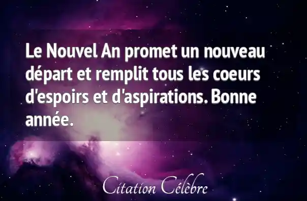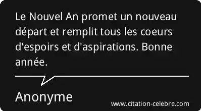 Le Nouvel An promet un nouveau départ et remplit tous les coeurs d'espoirs et d'aspirations. Bonne année.