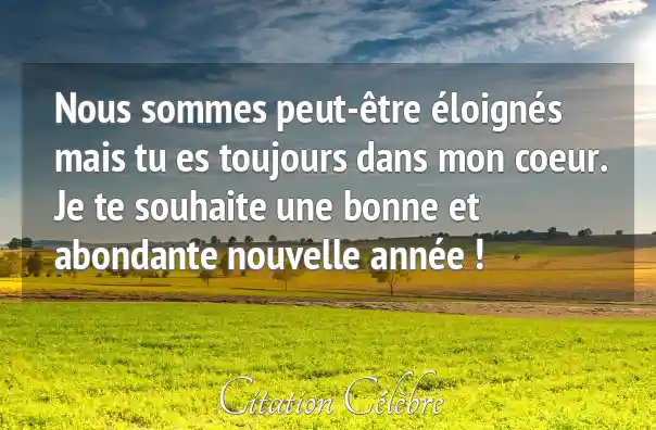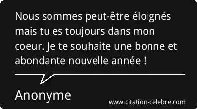 Nous sommes peut-être éloignés mais tu es toujours dans mon coeur. Je te souhaite une bonne et abondante nouvelle année !
