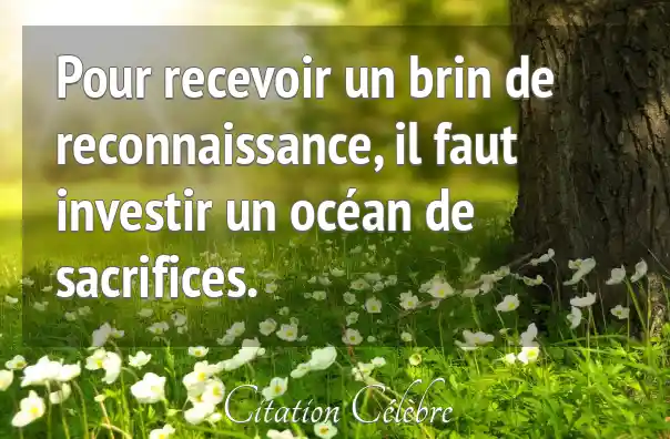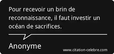 Pour recevoir un brin de reconnaissance, il faut investir un océan de sacrifices.