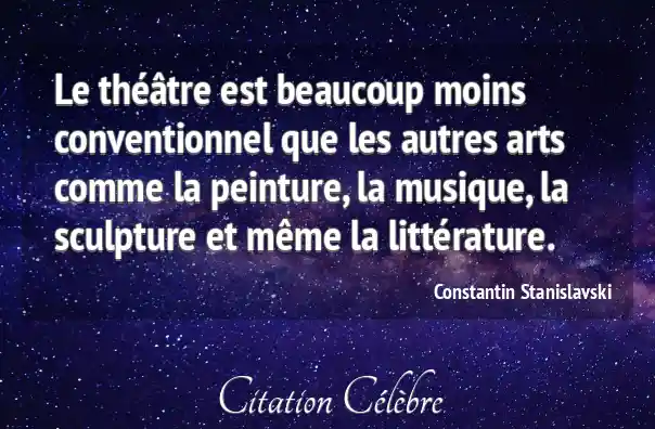 Le théâtre est beaucoup moins conventionnel que les autres arts comme la peinture, la musique, la sculpture et même la littérature.