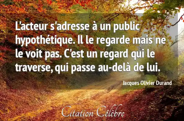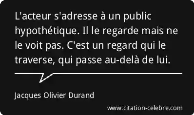 Citation Jacques Olivier Durand passe : L'acteur s'adresse à un public hypothétique. Il le regarde mais...