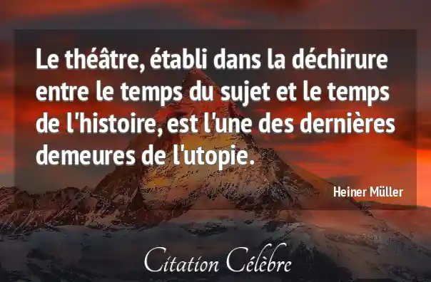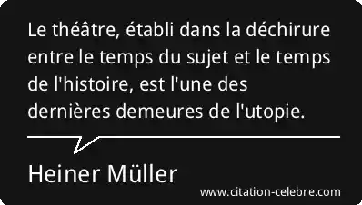 Le théâtre, établi dans la déchirure entre le temps du sujet et le temps de l'histoire, est l'une des dernières demeures de l'utopie.