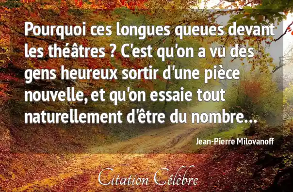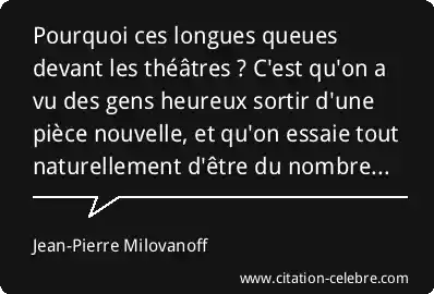 Pourquoi ces longues queues devant les théâtres ? C'est qu'on a vu des gens heureux sortir d'une pièce nouvelle, et qu'on essaie tout naturellement d'être du nombre...