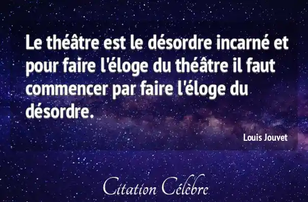 Le théâtre est le désordre incarné et pour faire l'éloge du théâtre il faut commencer par faire l'éloge du désordre.