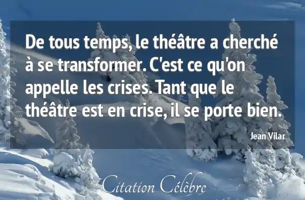De tous temps, le théâtre a cherché à se transformer. C'est ce qu'on appelle les crises. Tant que le théâtre est en crise, il se porte bien.