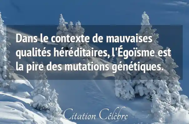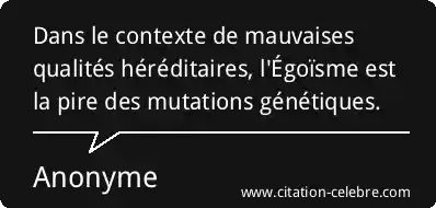 Dans le contexte de mauvaises qualités héréditaires, l'Égoïsme est la pire des mutations génétiques.