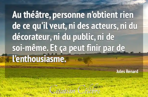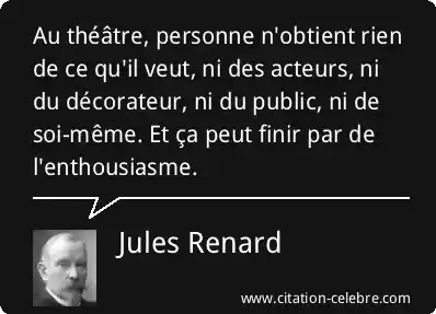 Au théâtre, personne n'obtient rien de ce qu'il veut, ni des acteurs, ni du décorateur, ni du public, ni de soi-même. Et ça peut finir par de l'enthousiasme.