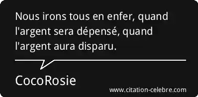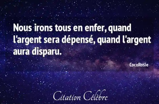 Nous irons tous en enfer, quand l'argent sera dépensé, quand l'argent aura disparu.