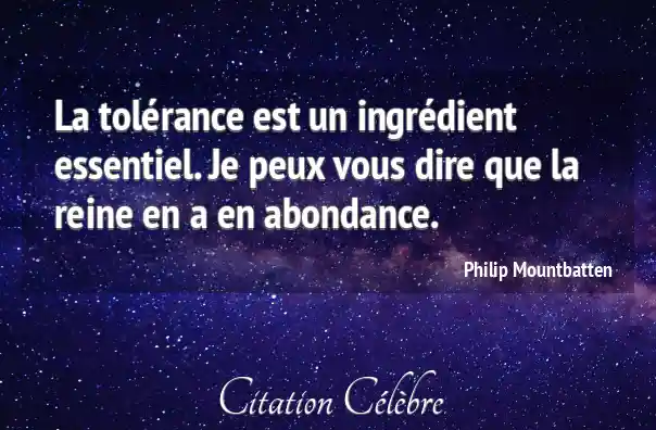 La tolérance est un ingrédient essentiel. Je peux vous dire que la reine en a en abondance.