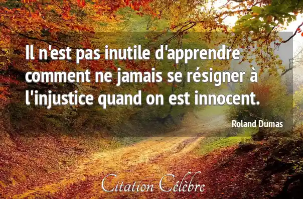 Il n'est pas inutile d'apprendre comment ne jamais se résigner à l'injustice quand on est innocent.