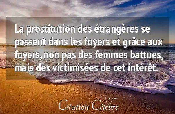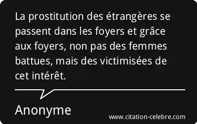 La prostitution des étrangères se passent dans les foyers et grâce aux foyers, non pas des femmes battues, mais des victimisées de cet intérêt.