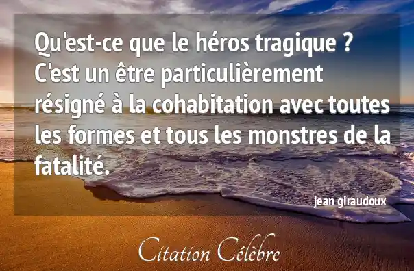 Qu'est-ce que le héros tragique ? C'est un être particulièrement résigné à la cohabitation avec toutes les formes et tous les monstres de la fatalité.