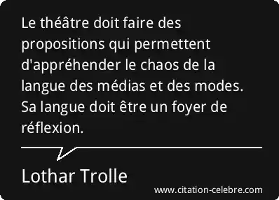 Le théâtre doit faire des propositions qui permettent d'appréhender le chaos de la langue des médias et des modes. Sa langue doit être un foyer de réflexion.