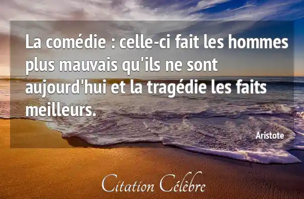 La comédie : celle-ci fait les hommes plus mauvais qu'ils ne sont aujourd'hui et la tragédie les faits meilleurs.