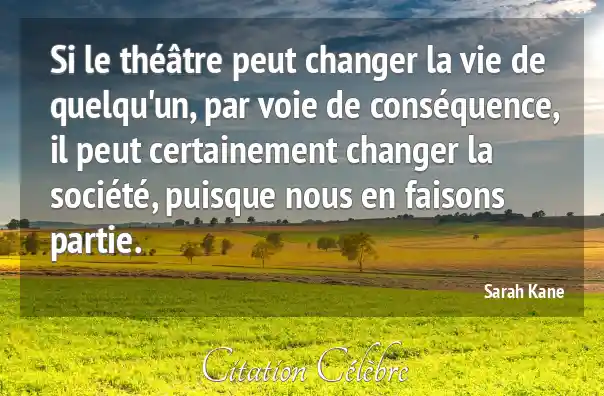 Si le théâtre peut changer la vie de quelqu'un, par voie de conséquence, il peut certainement changer la société, puisque nous en faisons partie.