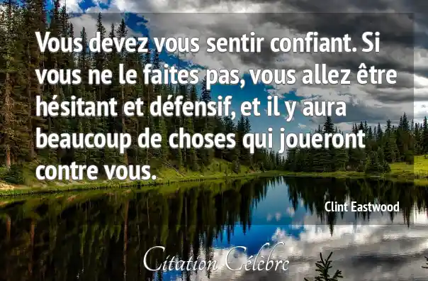 Vous devez vous sentir confiant. Si vous ne le faites pas, vous allez être hésitant et défensif, et il y aura beaucoup de choses qui joueront contre vous.