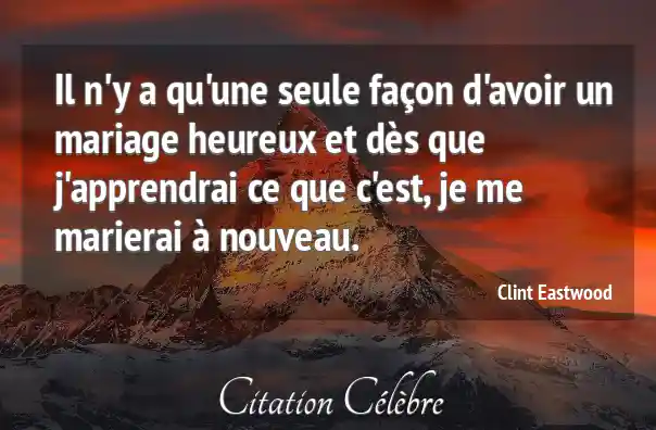 Il n'y a qu'une seule façon d'avoir un mariage heureux et dès que j'apprendrai ce que c'est, je me marierai à nouveau.