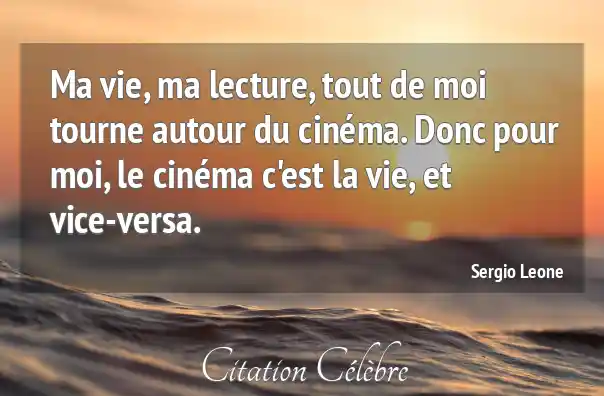 Ma vie, ma lecture, tout de moi tourne autour du cinéma. Donc pour moi, le cinéma c'est la vie, et vice-versa.