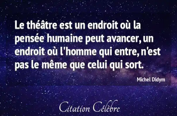 Le théâtre est un endroit où la pensée humaine peut avancer, un endroit où l'homme qui entre, n'est pas le même que celui qui sort.