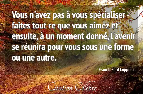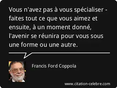 Vous n'avez pas à vous spécialiser - faites tout ce que vous aimez et ensuite, à un moment donné, l'avenir se réunira pour vous sous une forme ou une autre.