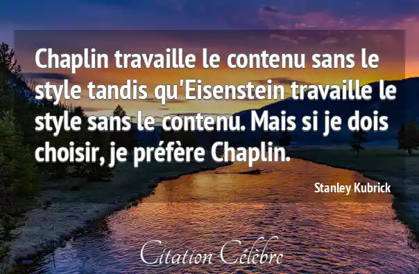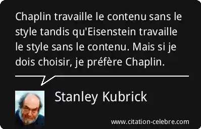 Chaplin travaille le contenu sans le style tandis qu'Eisenstein travaille le style sans le contenu. Mais si je dois choisir, je préfère Chaplin.