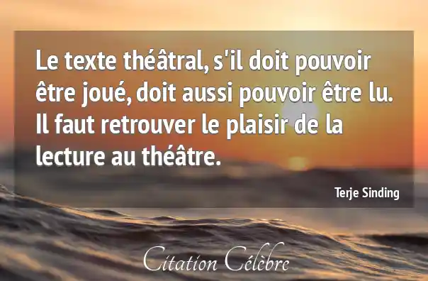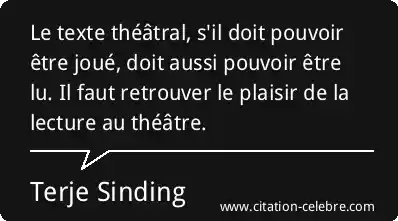 Le texte théâtral, s'il doit pouvoir être joué, doit aussi pouvoir être lu. Il faut retrouver le plaisir de la lecture au théâtre.