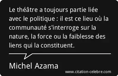 Le théâtre a toujours partie liée avec le politique : il est ce lieu où la communauté s'interroge sur la nature, la force ou la faiblesse des liens qui la constituent.