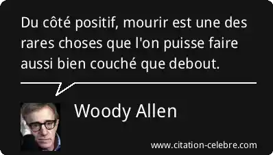 Du côté positif, mourir est une des rares choses que l'on puisse faire aussi bien couché que debout.