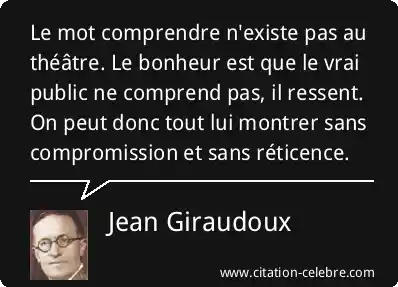 Le mot comprendre n'existe pas au théâtre. Le bonheur est que le vrai public ne comprend pas, il ressent. On peut donc tout lui montrer sans compromission et sans réticence.
