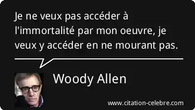 Je ne veux pas accéder à l'immortalité par mon oeuvre, je veux y accéder en ne mourant pas.