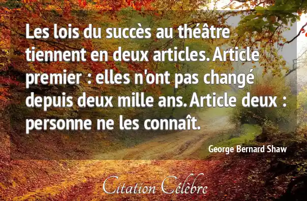Les lois du succès au théâtre tiennent en deux articles. Article premier : elles n'ont pas changé depuis deux mille ans. Article deux : personne ne les connaît.