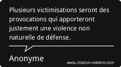 Plusieurs victimisations seront des provocations qui apporteront justement une violence non naturelle de défense.