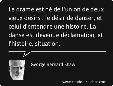 Le drame est né de l'union de deux vieux désirs : le désir de danser, et celui d'entendre une histoire. La danse est devenue déclamation, et l'histoire, situation.