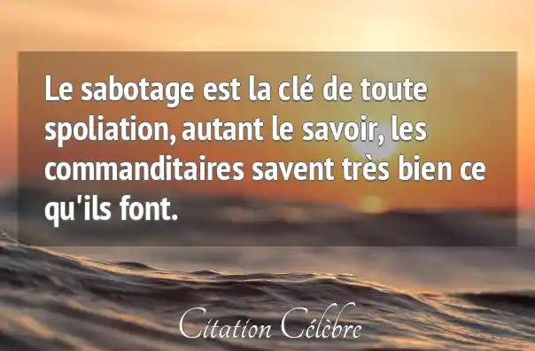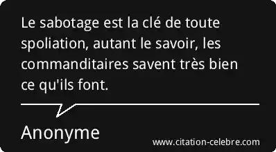 Citation Anonyme bien : Le sabotage est la clé de toute spoliation, autant le...