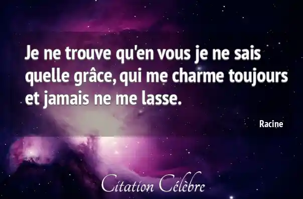 Je ne trouve qu'en vous je ne sais quelle grâce, qui me charme toujours et jamais ne me lasse.
