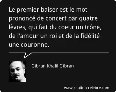 Le premier baiser est le mot prononcé de concert par quatre lèvres, qui fait du coeur un trône, de l'amour un roi et de la fidélité une couronne.