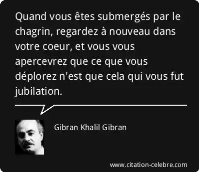 Quand vous êtes submergés par le chagrin, regardez à nouveau dans votre coeur, et vous vous apercevrez que ce que vous déplorez n'est que cela qui vous fut jubilation.