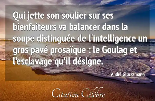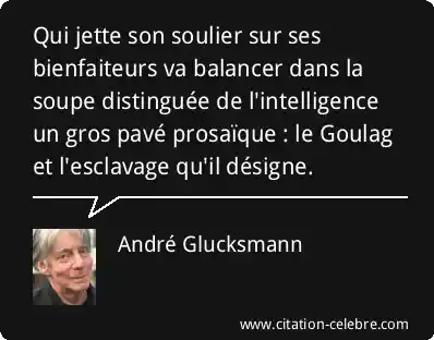 Qui jette son soulier sur ses bienfaiteurs va balancer dans la soupe distinguée de l'intelligence un gros pavé prosaïque : le Goulag et l'esclavage qu'il désigne.