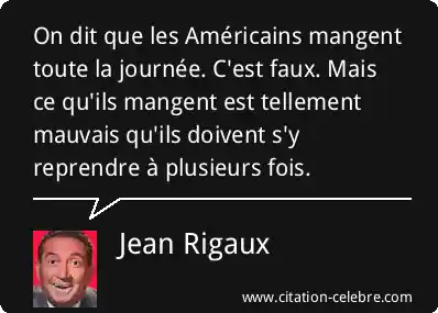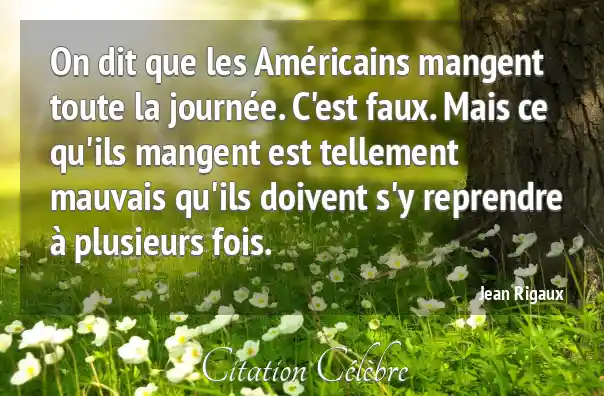 On dit que les Américains mangent toute la journée. C'est faux. Mais ce qu'ils mangent est tellement mauvais qu'ils doivent s'y reprendre à plusieurs fois.