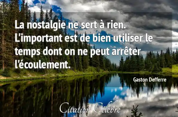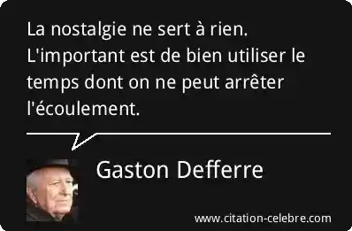 La nostalgie ne sert à rien. L'important est de bien utiliser le temps dont on ne peut arrêter l'écoulement.