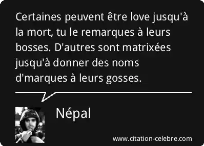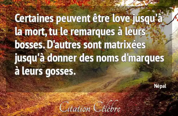 Certaines peuvent être love jusqu'à la mort, tu le remarques à leurs bosses. D'autres sont matrixées jusqu'à donner des noms d'marques à leurs gosses.