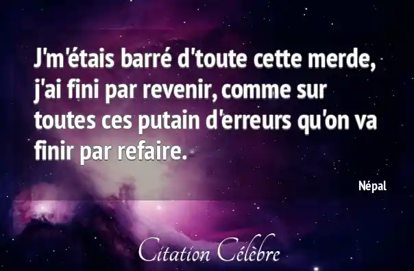J'm'étais barré d'toute cette merde, j'ai fini par revenir, comme sur toutes ces putain d'erreurs qu'on va finir par refaire.