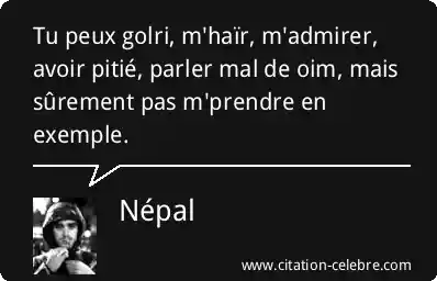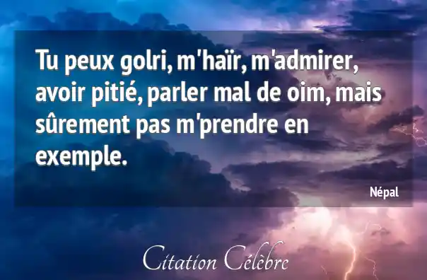 Tu peux golri, m'haïr, m'admirer, avoir pitié, parler mal de oim, mais sûrement pas m'prendre en exemple.