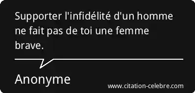 Supporter l'infidélité d'un homme ne fait pas de toi une femme brave.