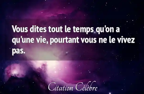 Vous dites tout le temps qu'on a qu'une vie, pourtant vous ne le vivez pas.