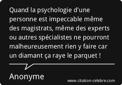 Quand la psychologie d'une personne est impeccable même des magistrats, même des experts ou autres spécialistes ne pourront malheureusement rien y faire car un diamant ça raye le parquet !